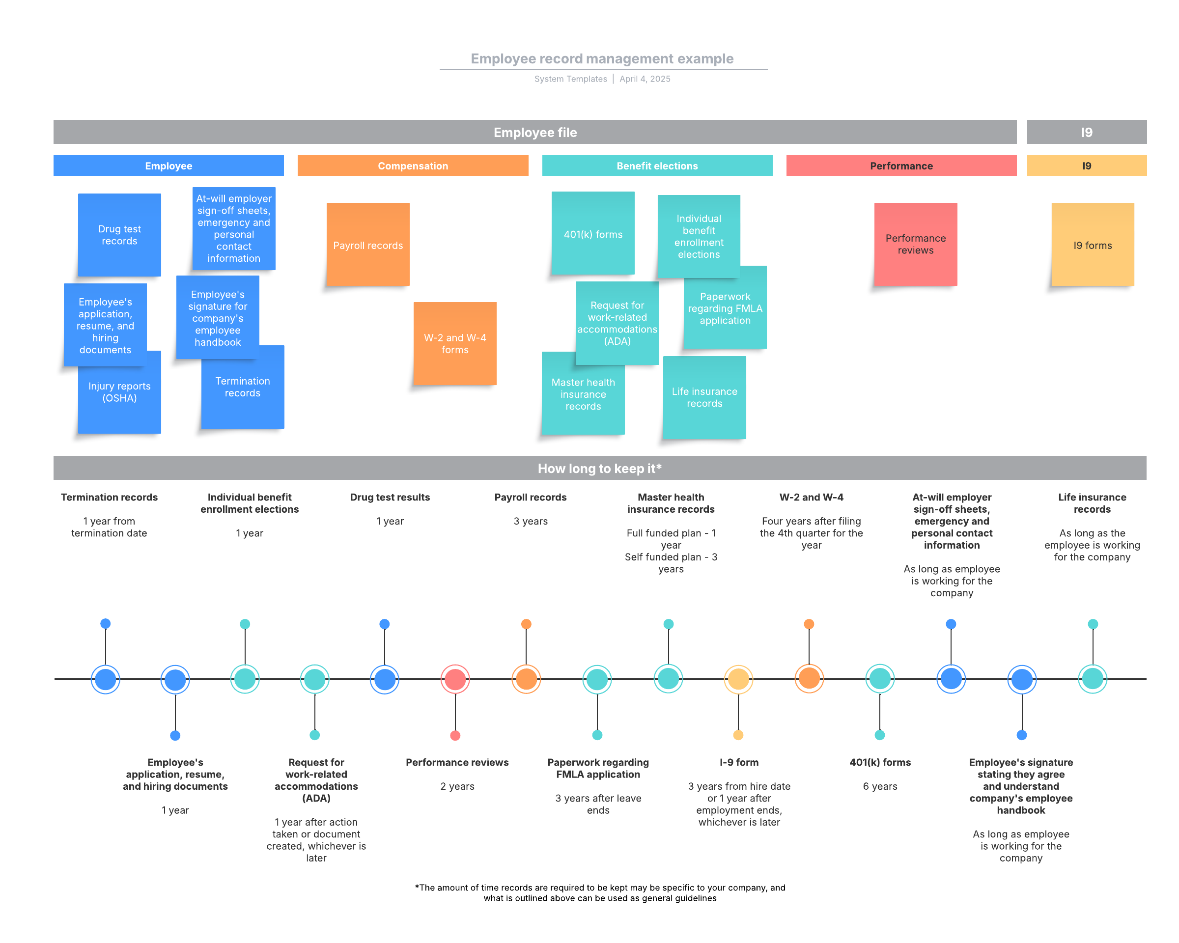 Open this template to view a detailed example of an employee record management diagram that you can customize to your use case.