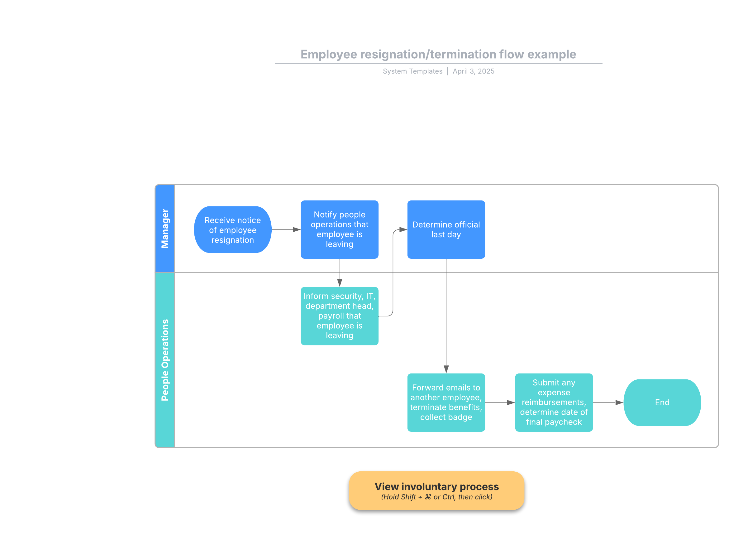 Open this template to view a detailed example of an employee resignation/termination flow that you can customize to your use case.