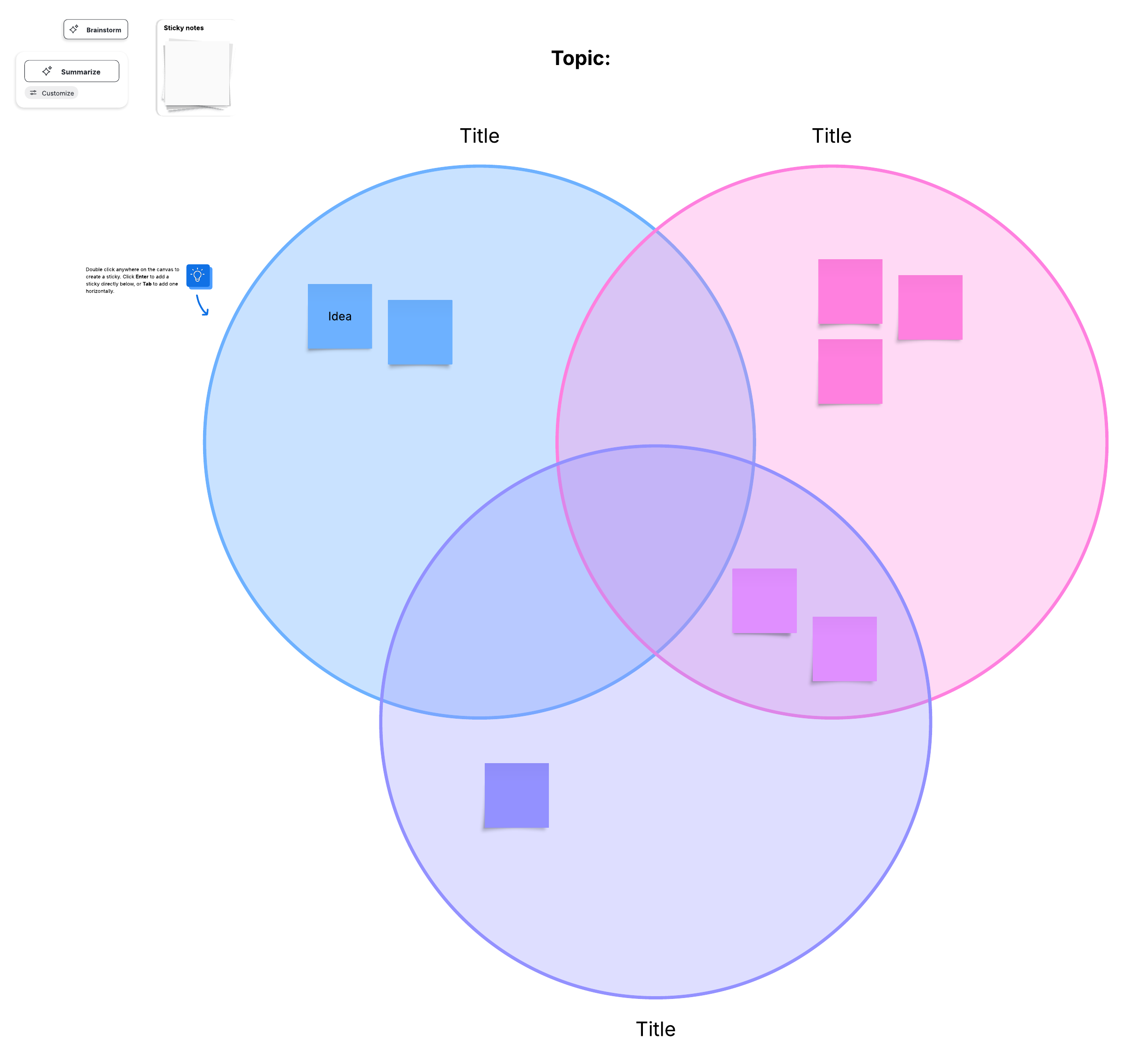 Open this template and add content to customize this three-set Venn diagram to your use case.