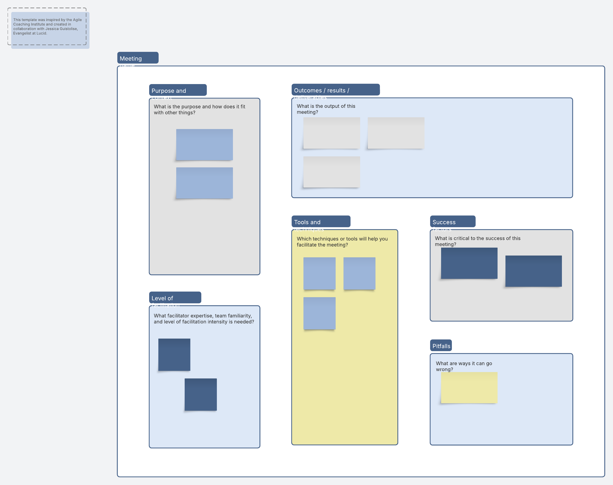 Plan your event by filling out the meeting template. Use sticky notes to capture your ideas in each section.