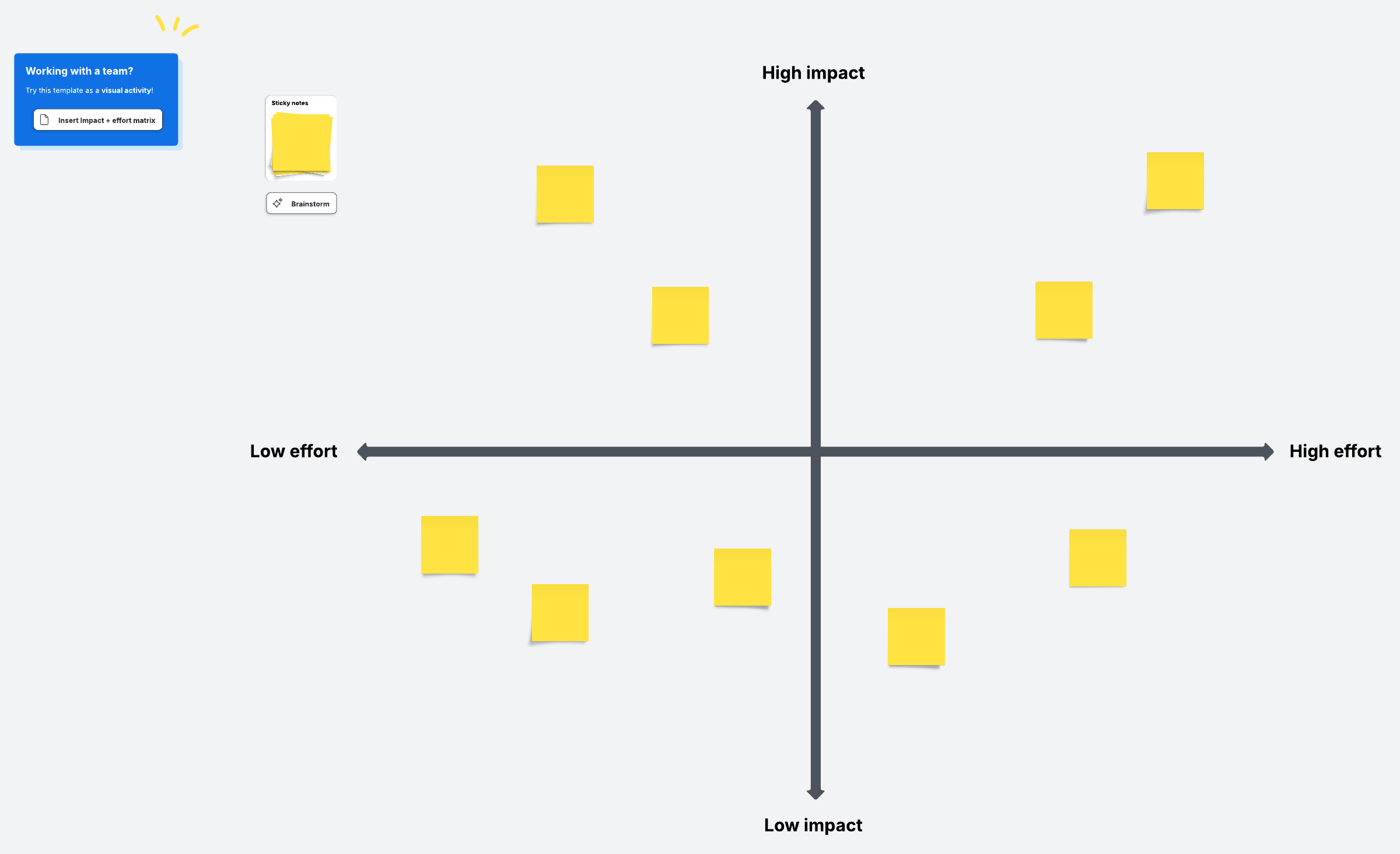Here’s a breakdown of how you can get started creating your impact effort matrix in Lucidspark: