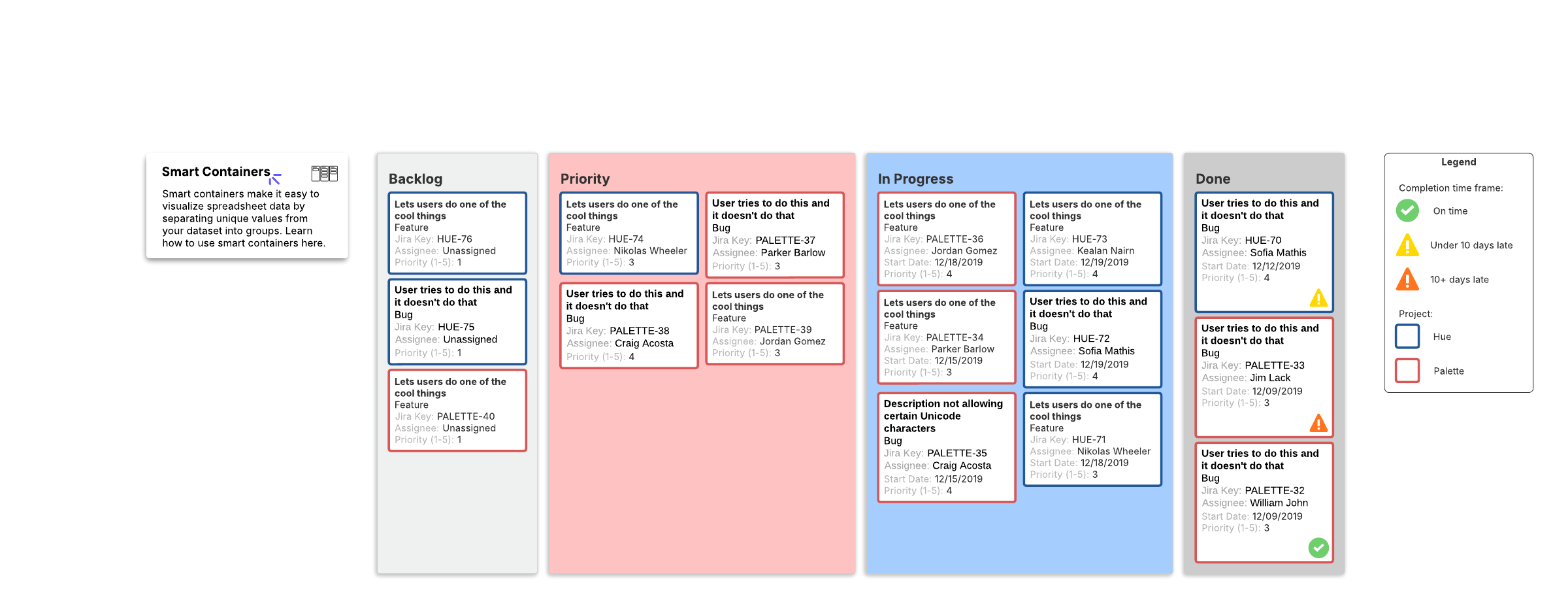 Open this template to view a Kanban board with smart containers that you can customize to your use case.