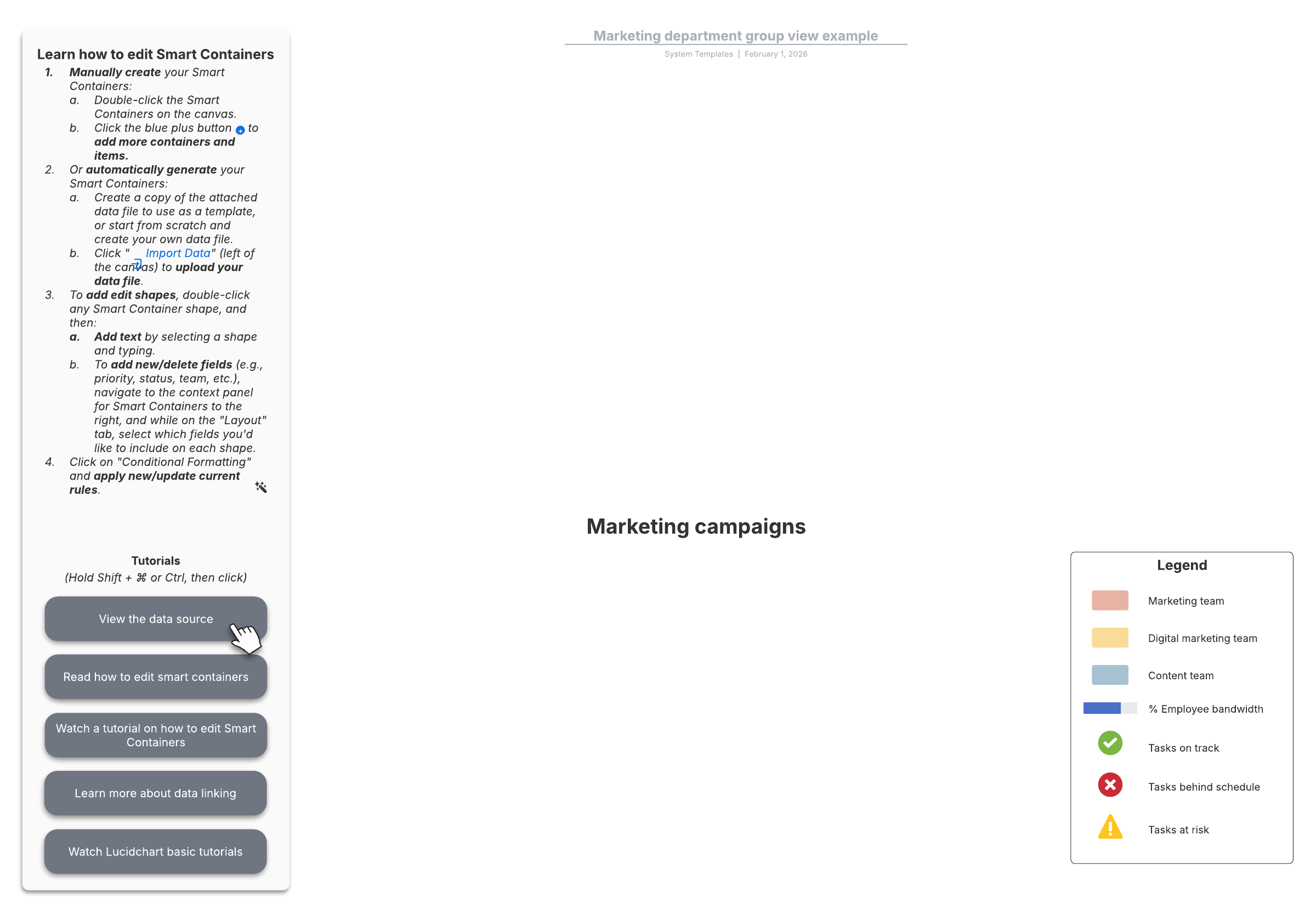 Open this template to view a detailed example of a marketing department group view that you can customize to your use case.