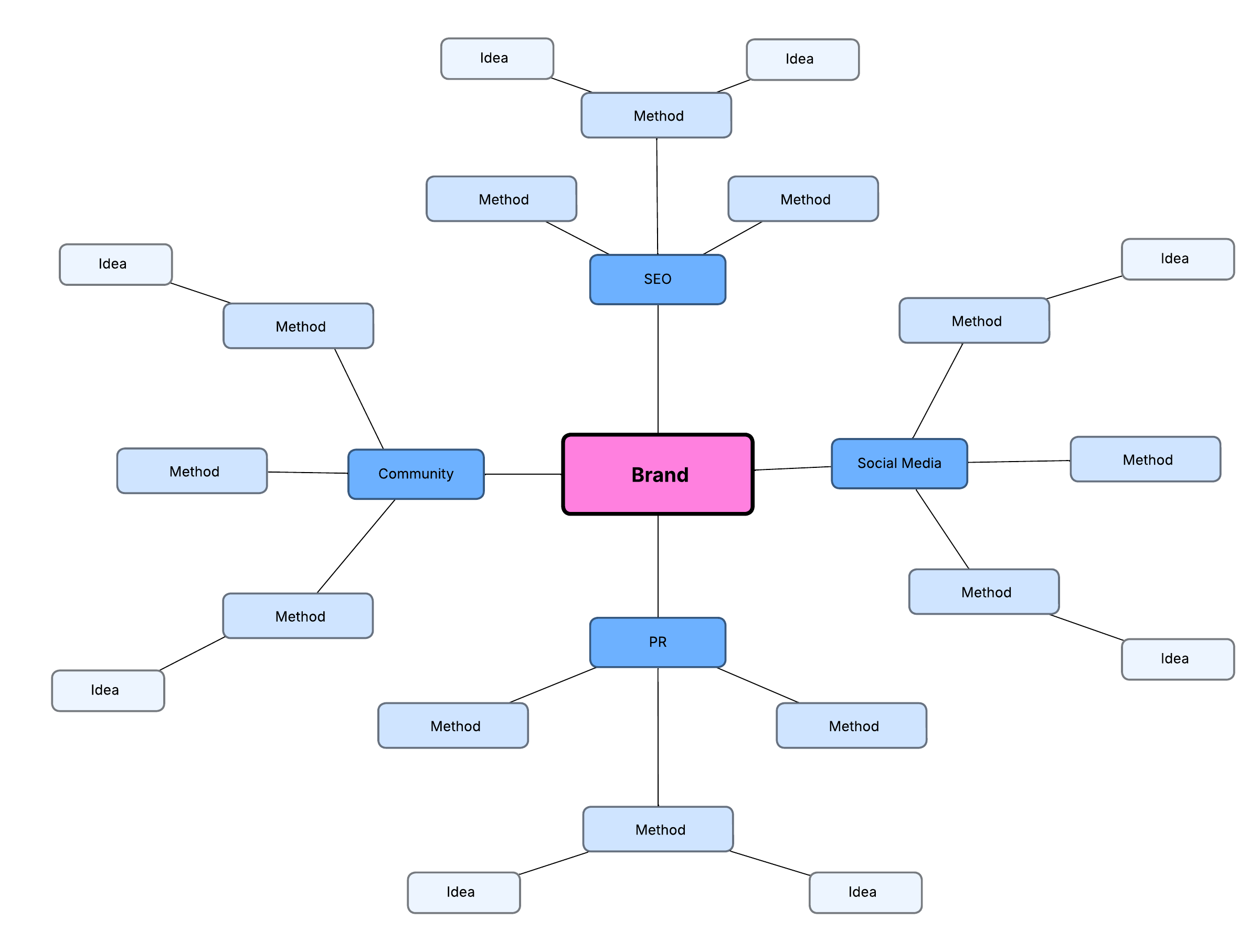 Open this template to view a detailed example of a marketing plan diagram that you can customize to your use case.