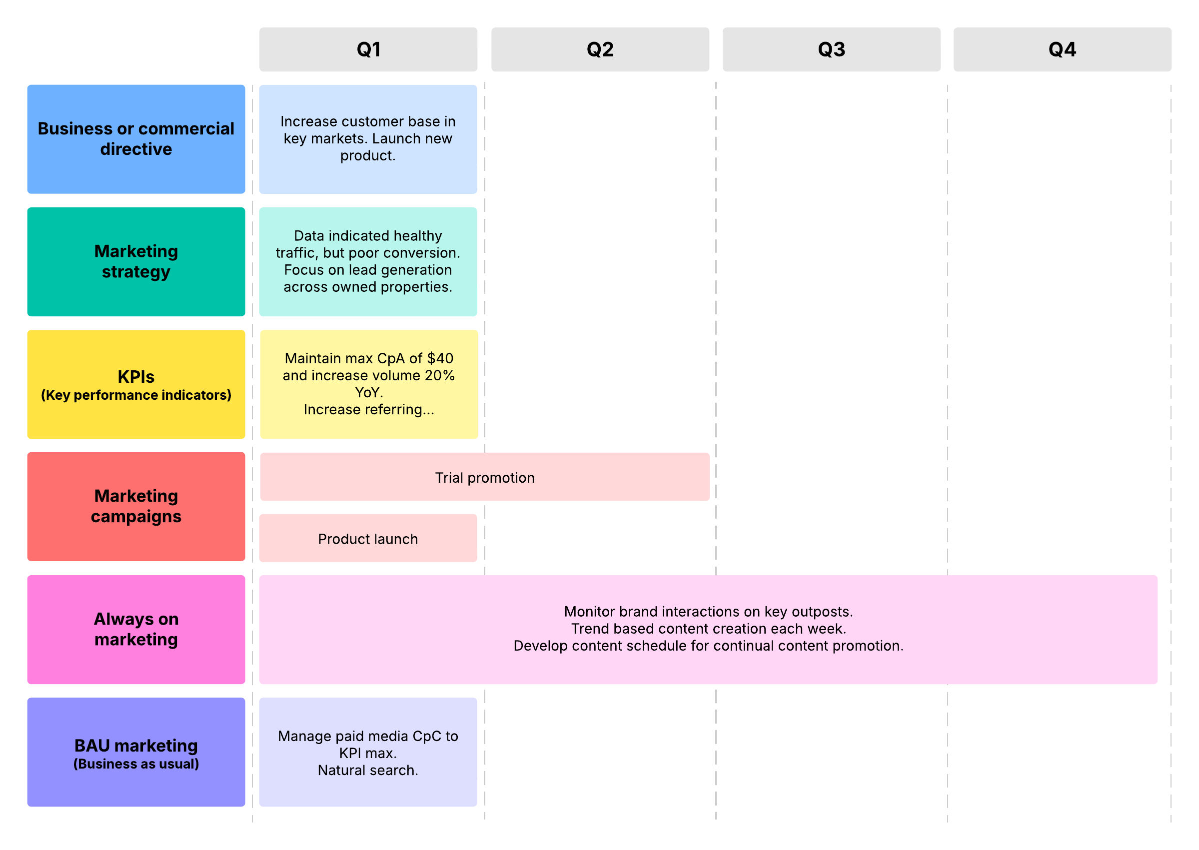 Open this template to view a detailed example of a marketing planning hierarchy that you can customize to your use case.