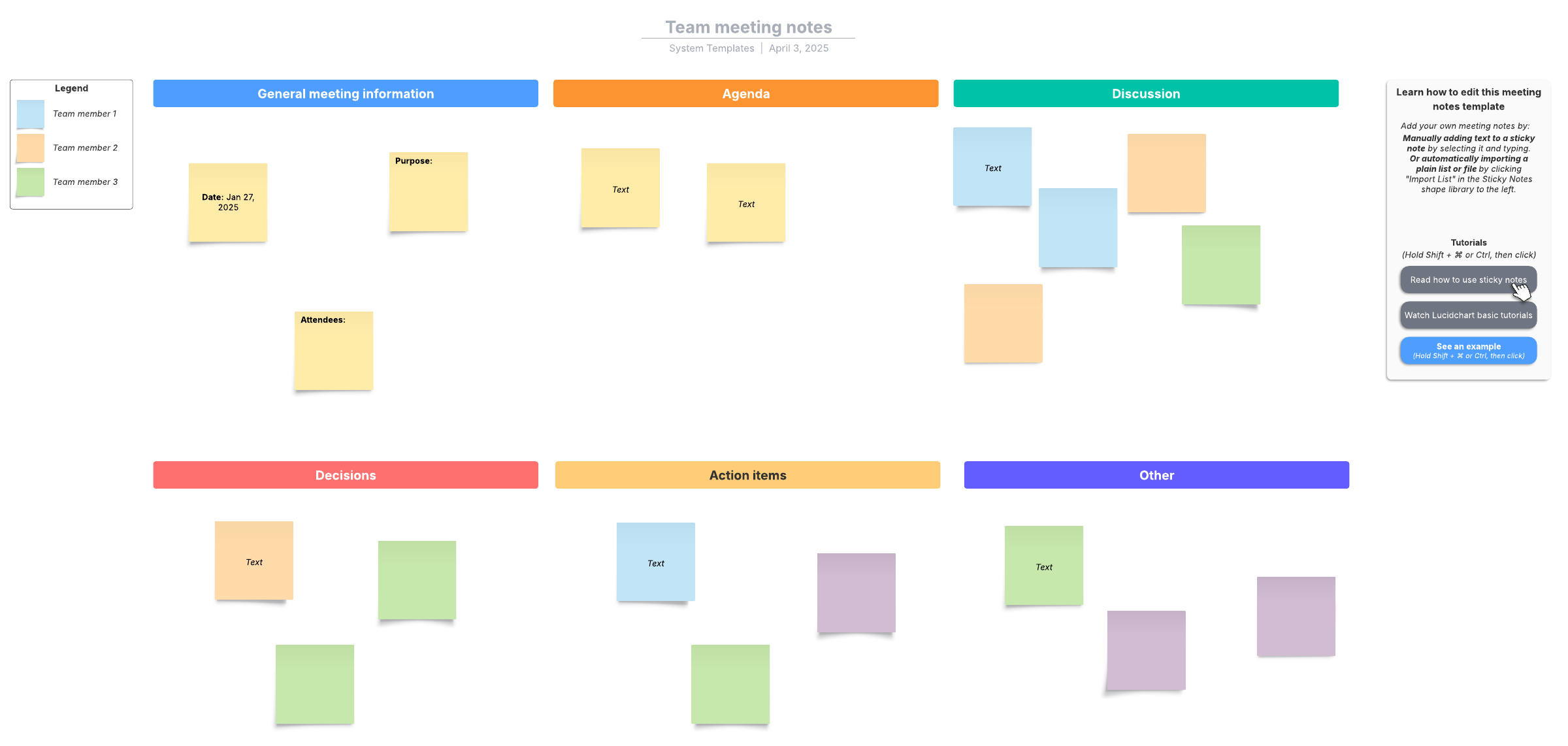 Open this template and add content to customize this team meeting notes diagram to your use case.