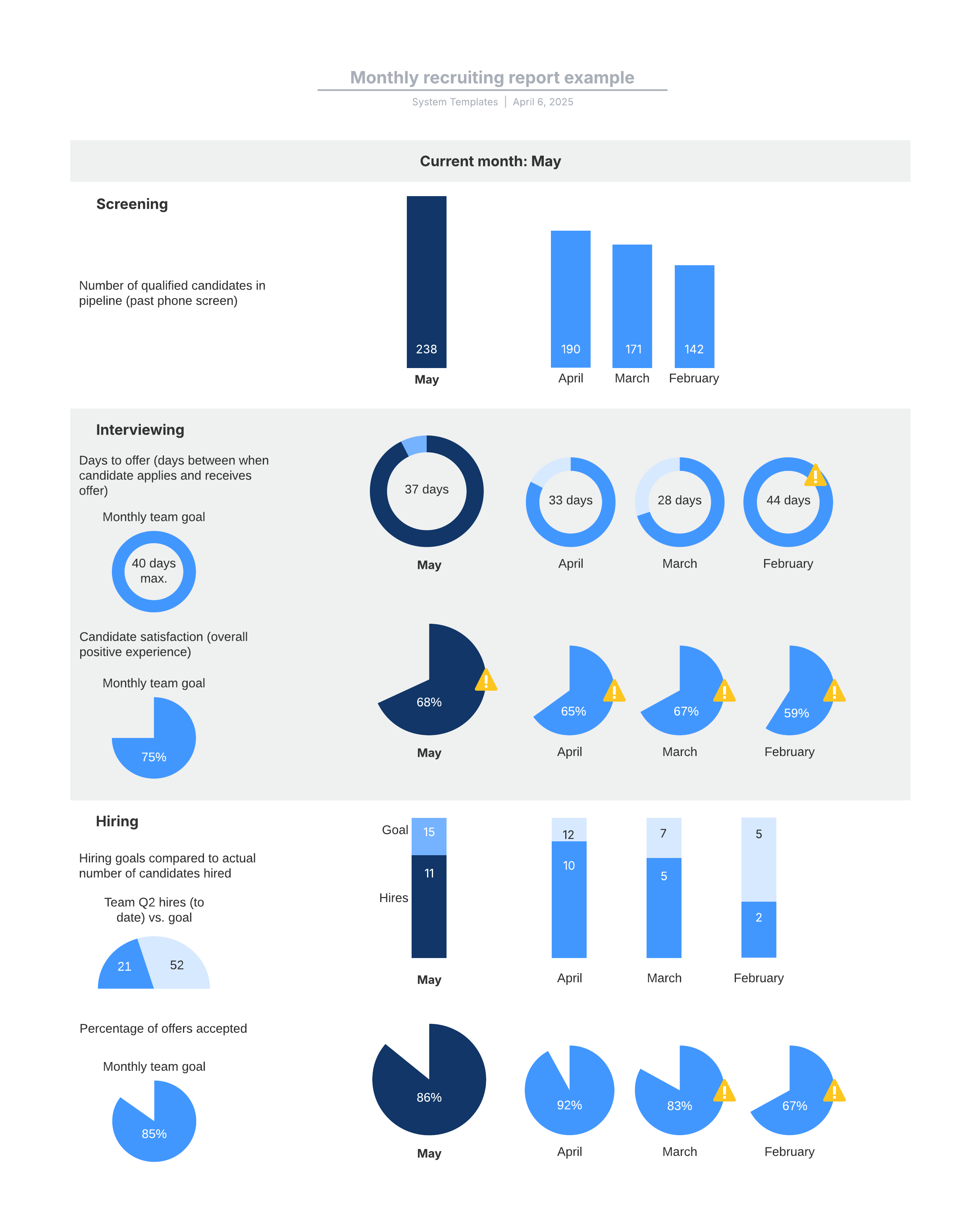 Open this template to view a detailed example of a monthly recruiting report summary that you can customize to your use case.