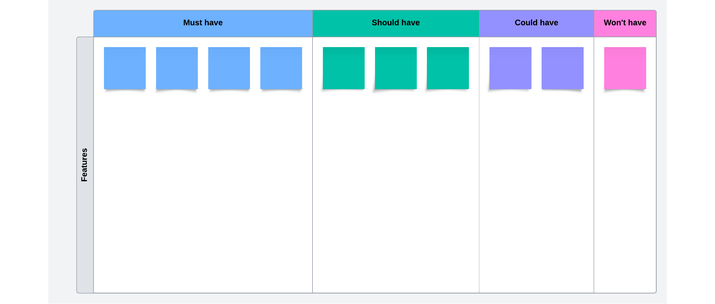 Here’s a rundown of how to start prioritizing using a MoSCow method template: