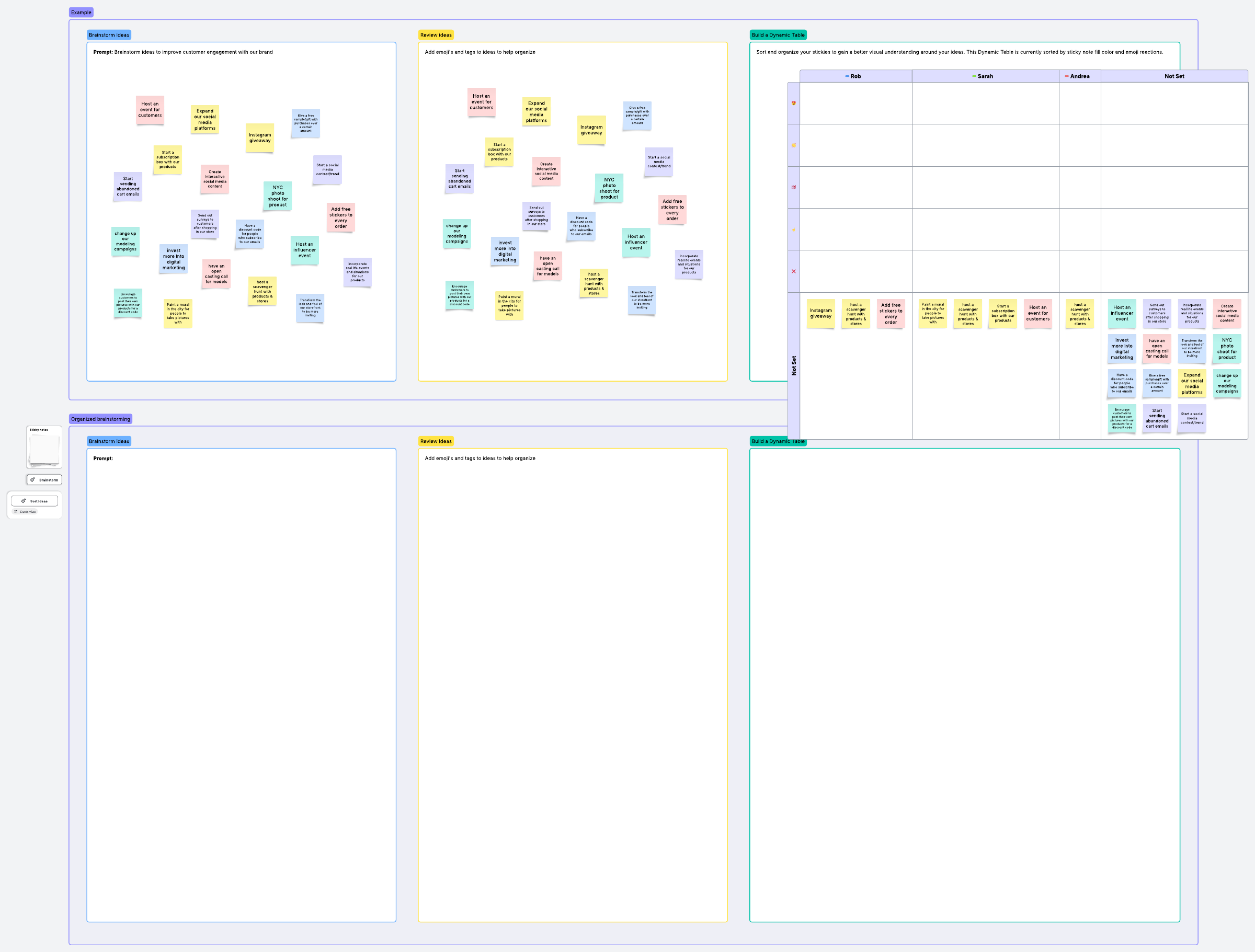 Collaborate with team members and brainstorm ideas for a specific prompt. Share opinions on the ideas and organize them using the Dynamic Matrix feature.