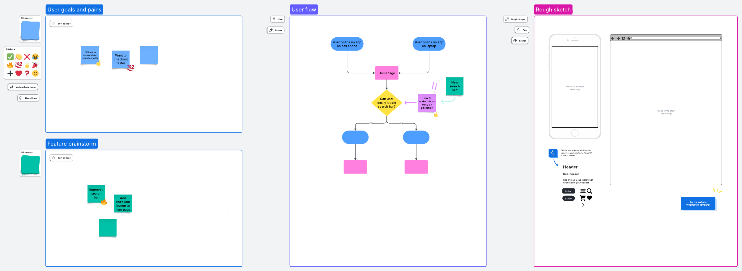 Make the most of your design meetings with this product design meeting template. Brainstorm valuable ideas, create sketches, and develop user flows.