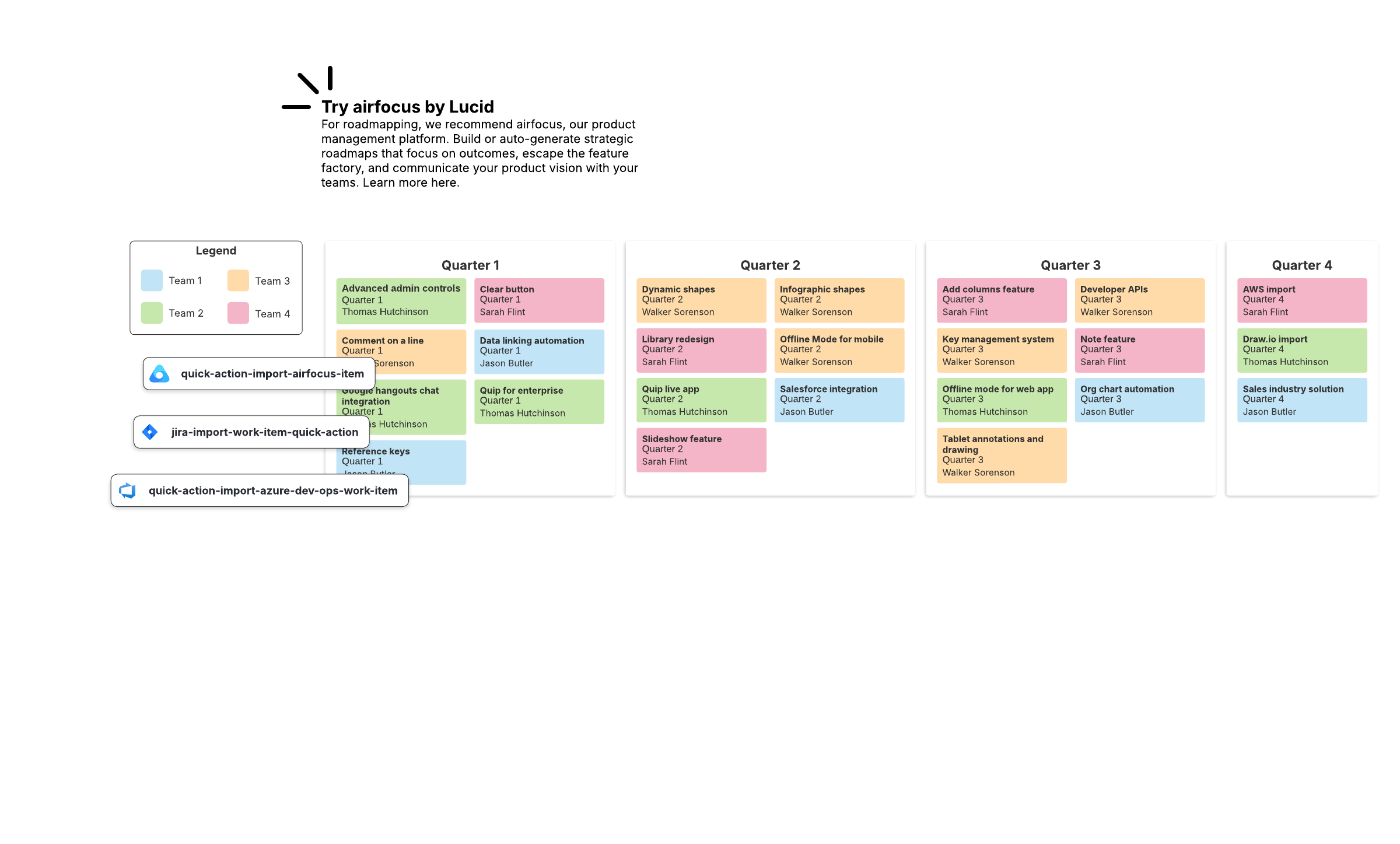 - Organize product features according to quarter, team, and priority.