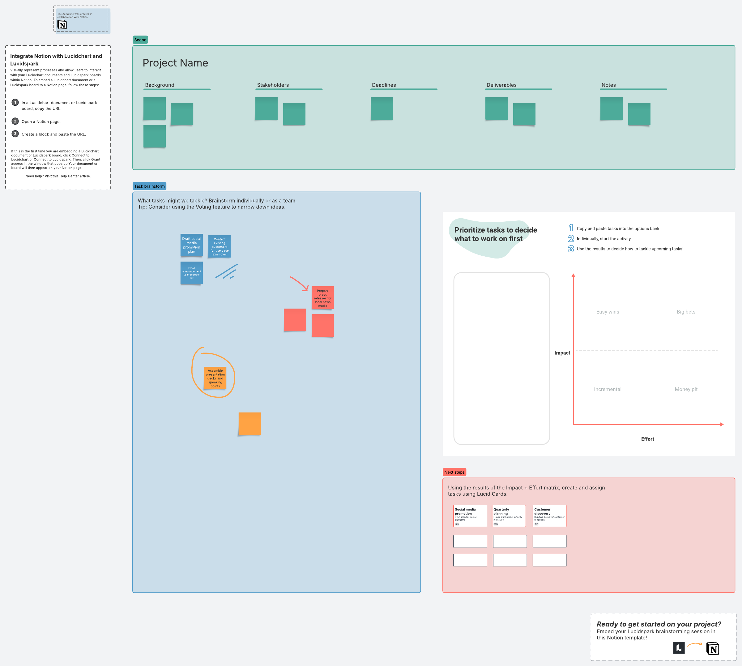 How to use the project brainstorming with Notion template in Lucidspark