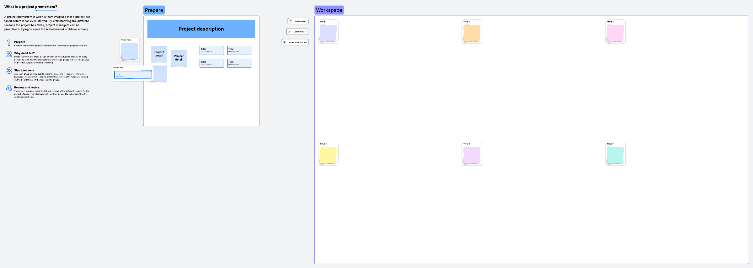 Try our free premortem exercise template. It’s highly customizable and can be used either remotely or in person as a collaborative project planning exercise for your team.