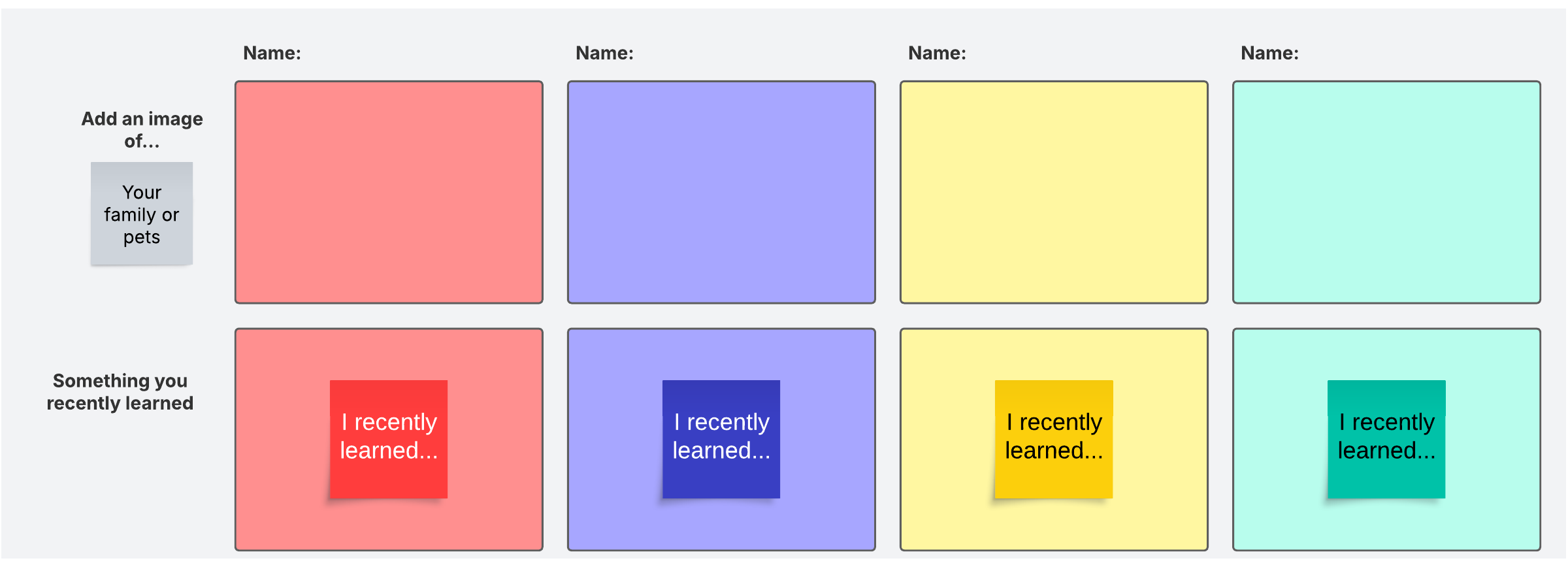 Get to know your team at any time of the day with this quick share icebreaker template.