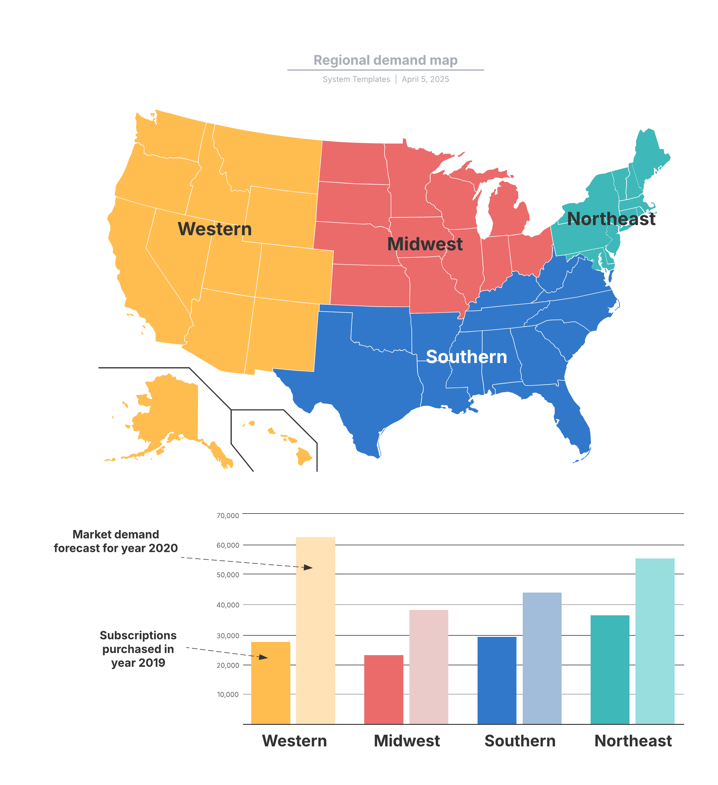 Open this template to view a detailed example of a regional demand map that you can customize to your use case.