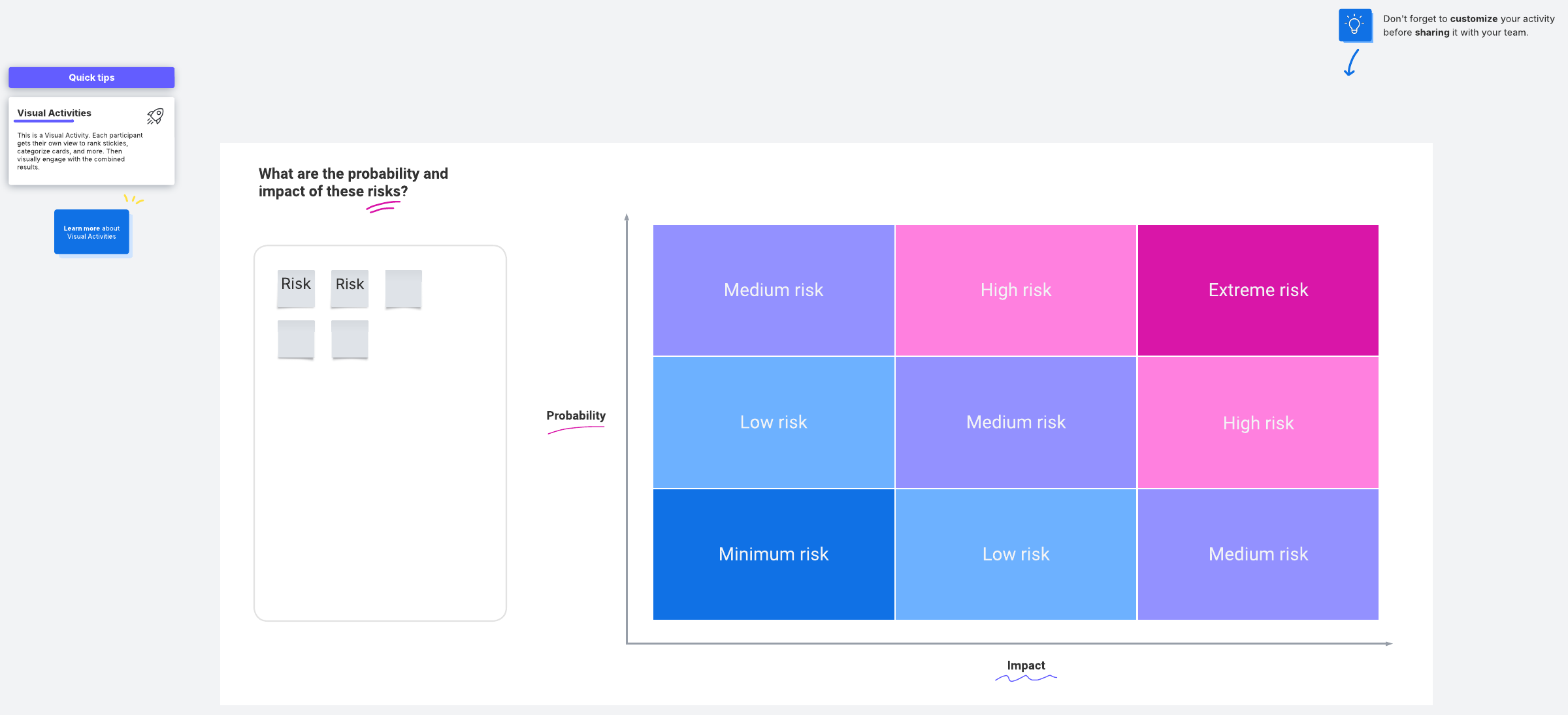 With this activity, you can make better decisions about the risks that your project might face given the probability and impact of those risks.