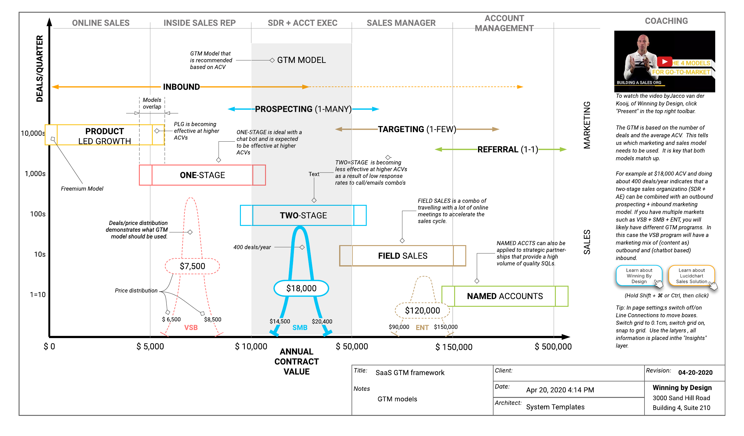 The GTM is based on the number of deals and the average ACV. This tells us which marketing and sales model needs to be used. It is key that both models match up.