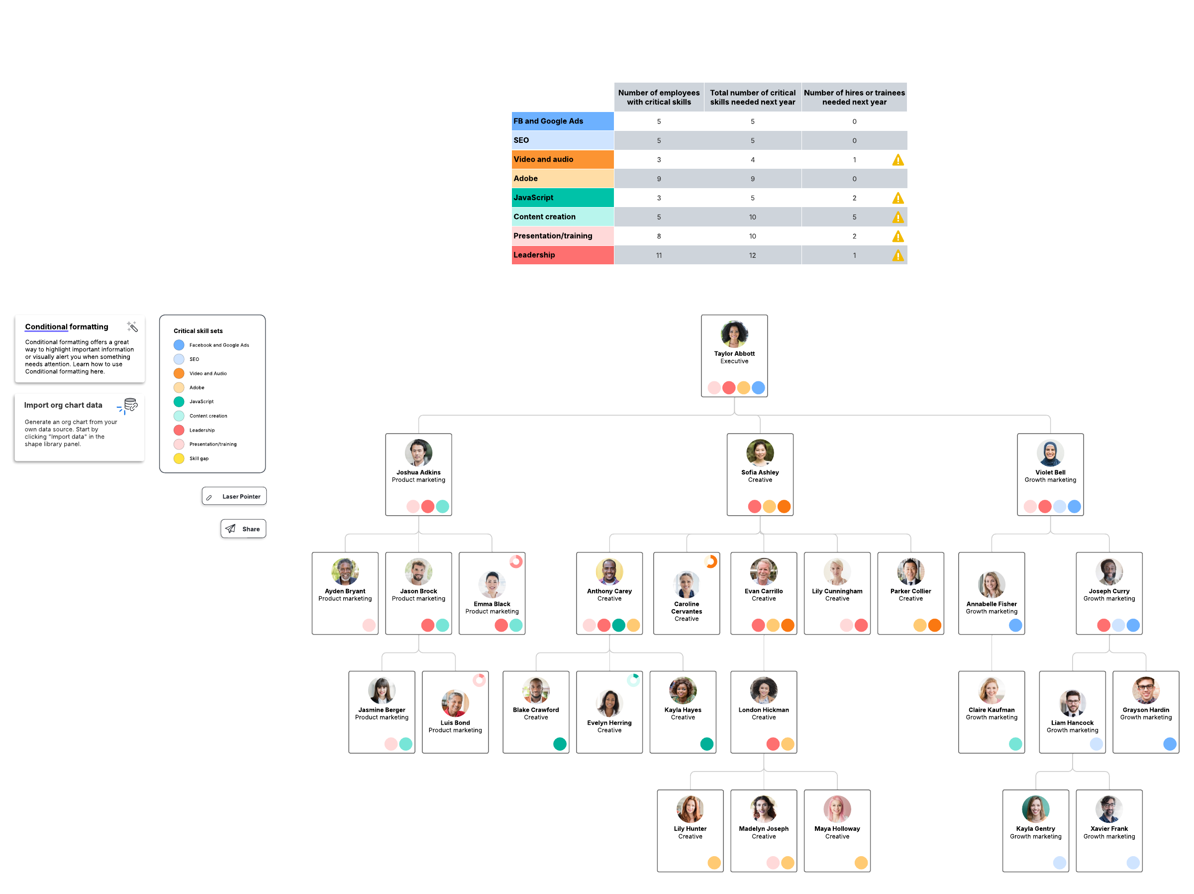 Open this template to view a detailed example of a skills gap analysis org chart example that you can customize to your use case.