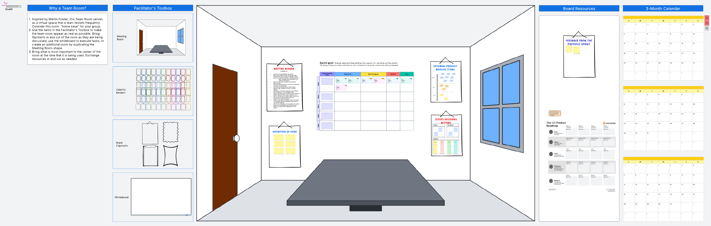 - Take advantage of the board’s included templates and frameworks, including the meeting agenda, sprint backlog, sprint goal, and definition of done.