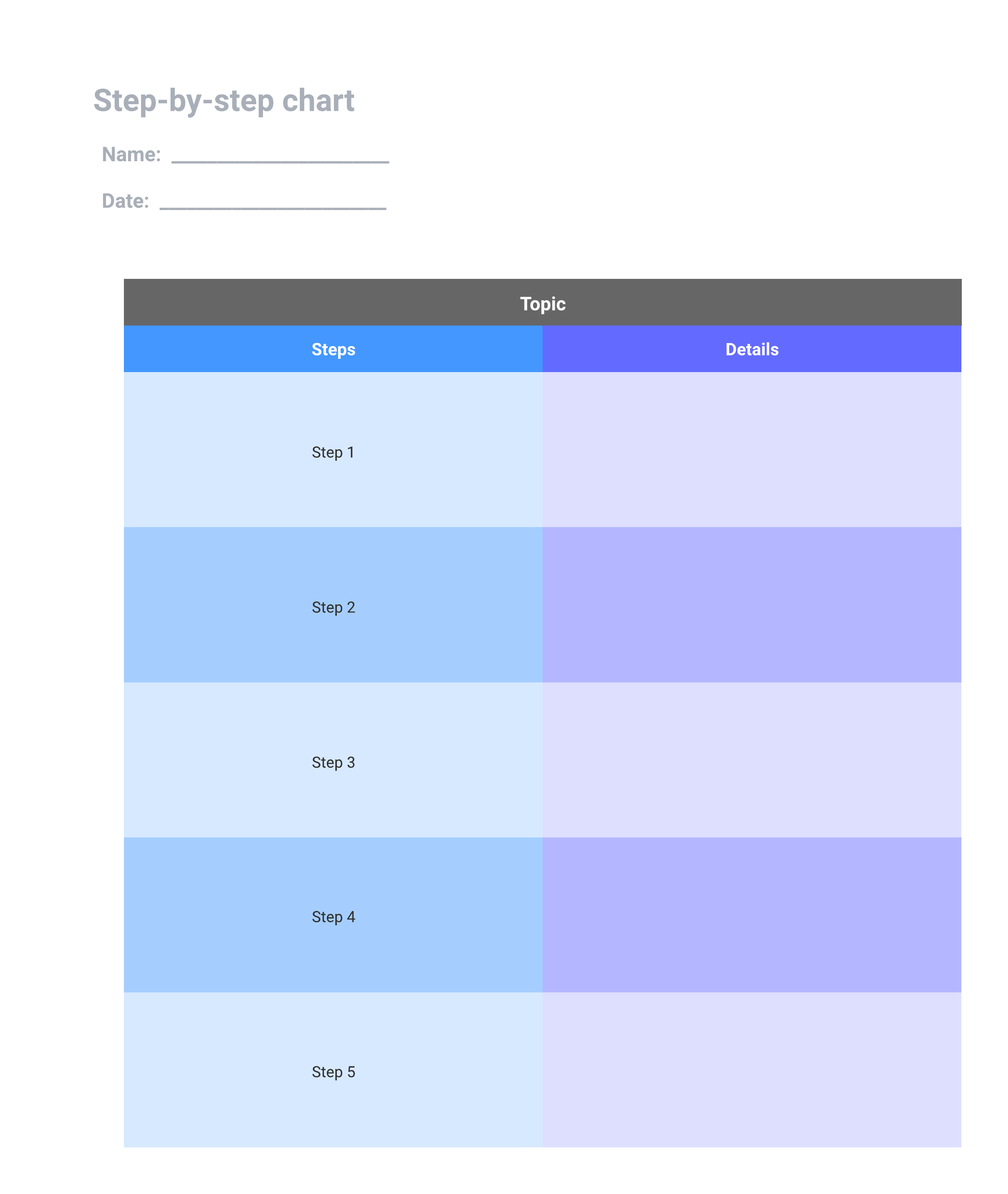 Open this template and add content to customize this step-by-step chart to your use case.