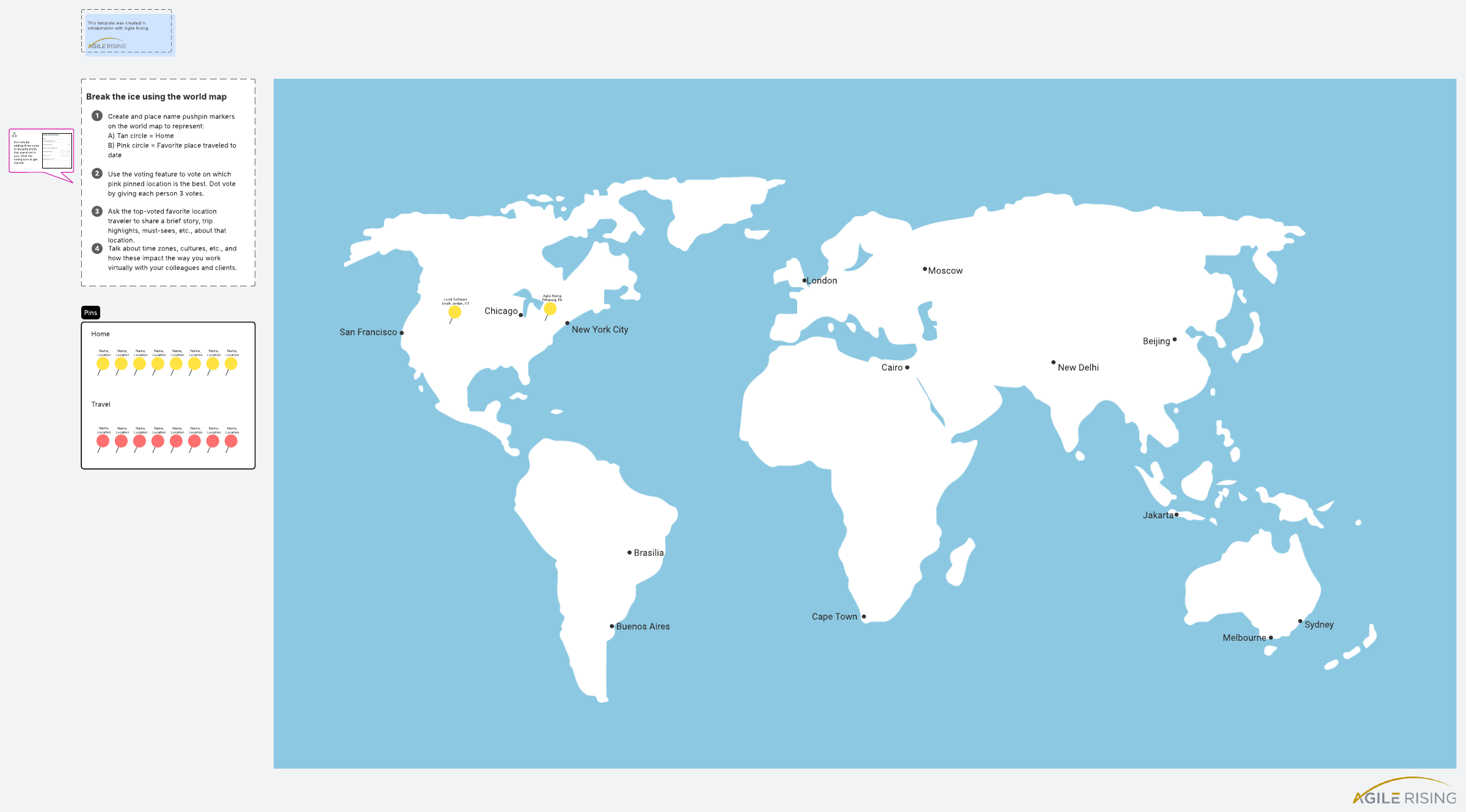 - Use the voting feature to vote on which pink circle is the most interesting location. Give each participant three votes to dot vote on their favorite locations.