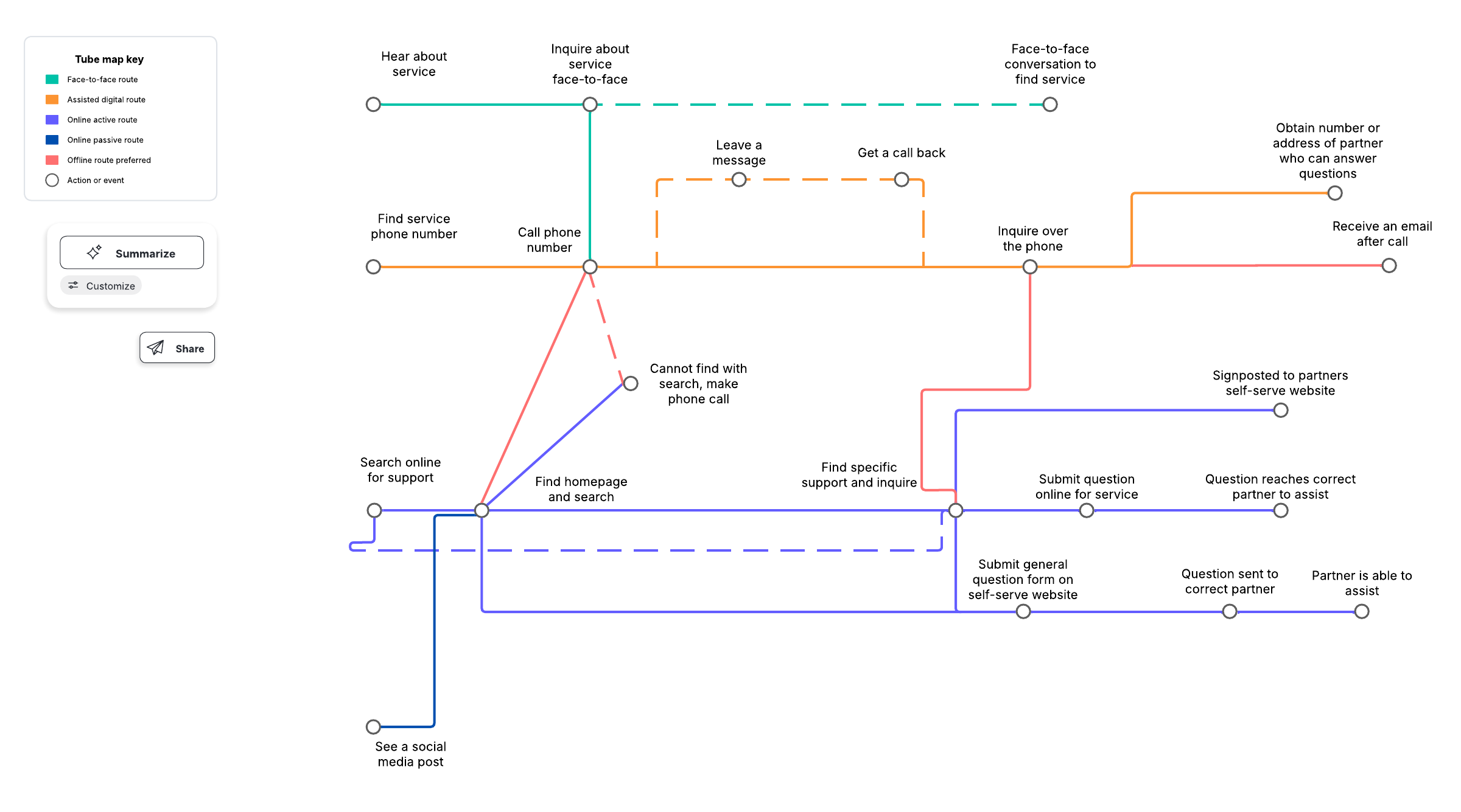 Open this template to view a detailed example of a Tube map that you can customize to your use case.