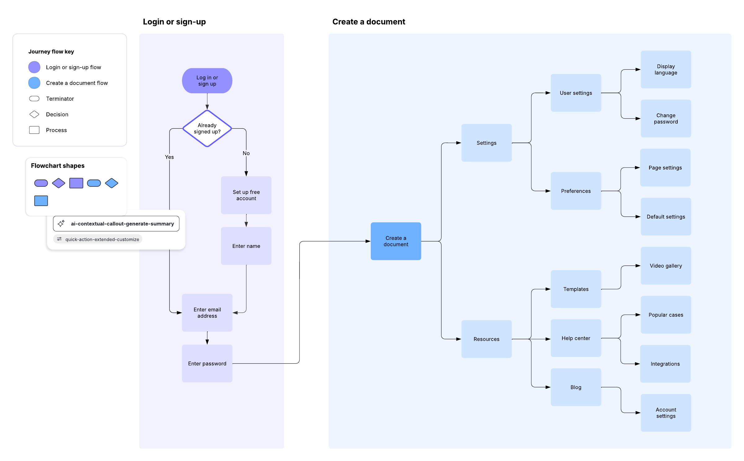 Open this template to view a detailed example of a user journey flow that you can customize to your use case.