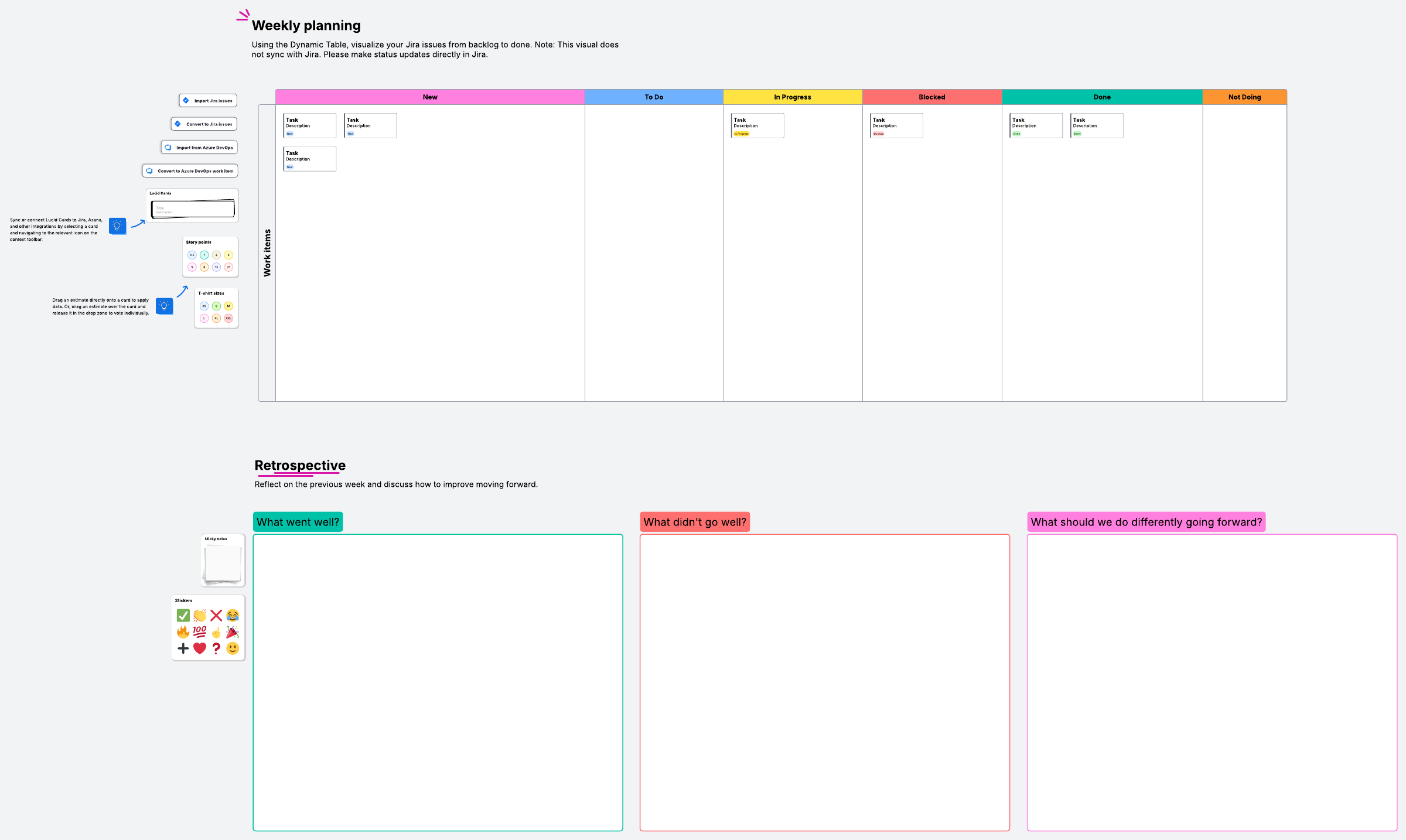 Weekly kanban + retro
